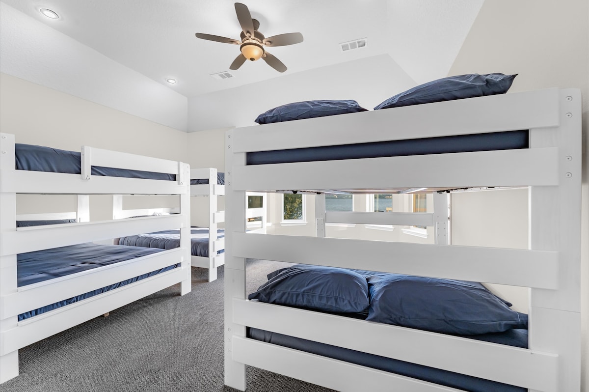 MontgomeryWelcome to our stunning waterfront home! Sleeps 20. Enjoy 4 spacious bedrooms, including 3 king suites with privacy, and a large bunkroom with 6 queens, Couch bed for 2, all with high-quality, 1000-thread-count linens and down comforters. Open concept, TVs in all rooms, arcade games, and a playstation on a 75" TV. Relax on the balcony overlooking the water, large dock, screened porch, or outdoor patio with BBQ. Perfect for families—large grass yard, firepit, kayaks, SUPs, fast WiFi, and more!